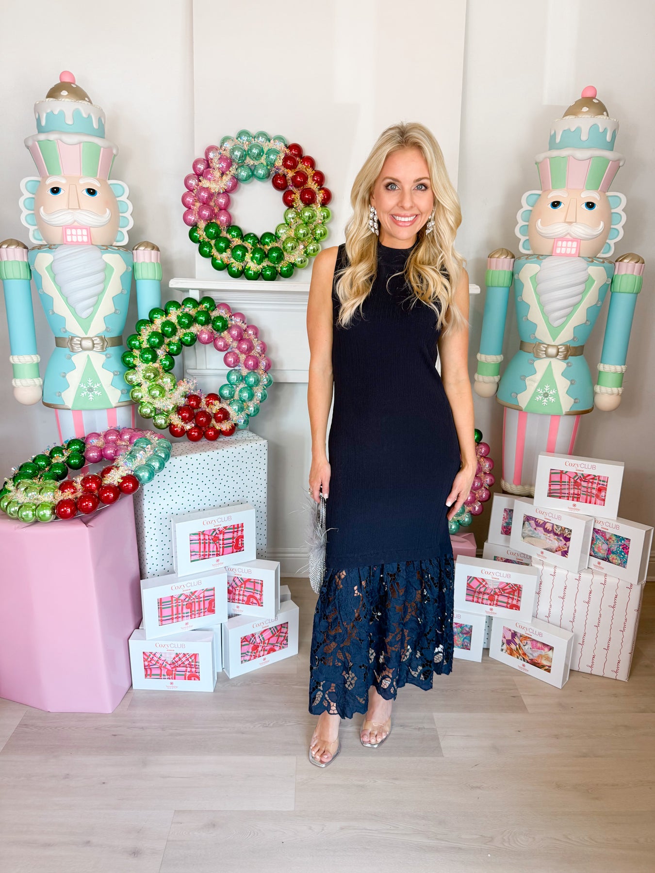 Meet the Brielle Lace Midi Dress — a sophisticated, ultra-flattering statement piece designed to stand out with ease. This sleeveless beauty features a sleek, textured bodice that hugs in all the right places, flowing into a breathtaking lace hemline that adds movement, romance, and just the right touch of drama. Perfect for holiday parties, winter weddings, or any moment you want to feel effortlessly elegant. A true showstopper.