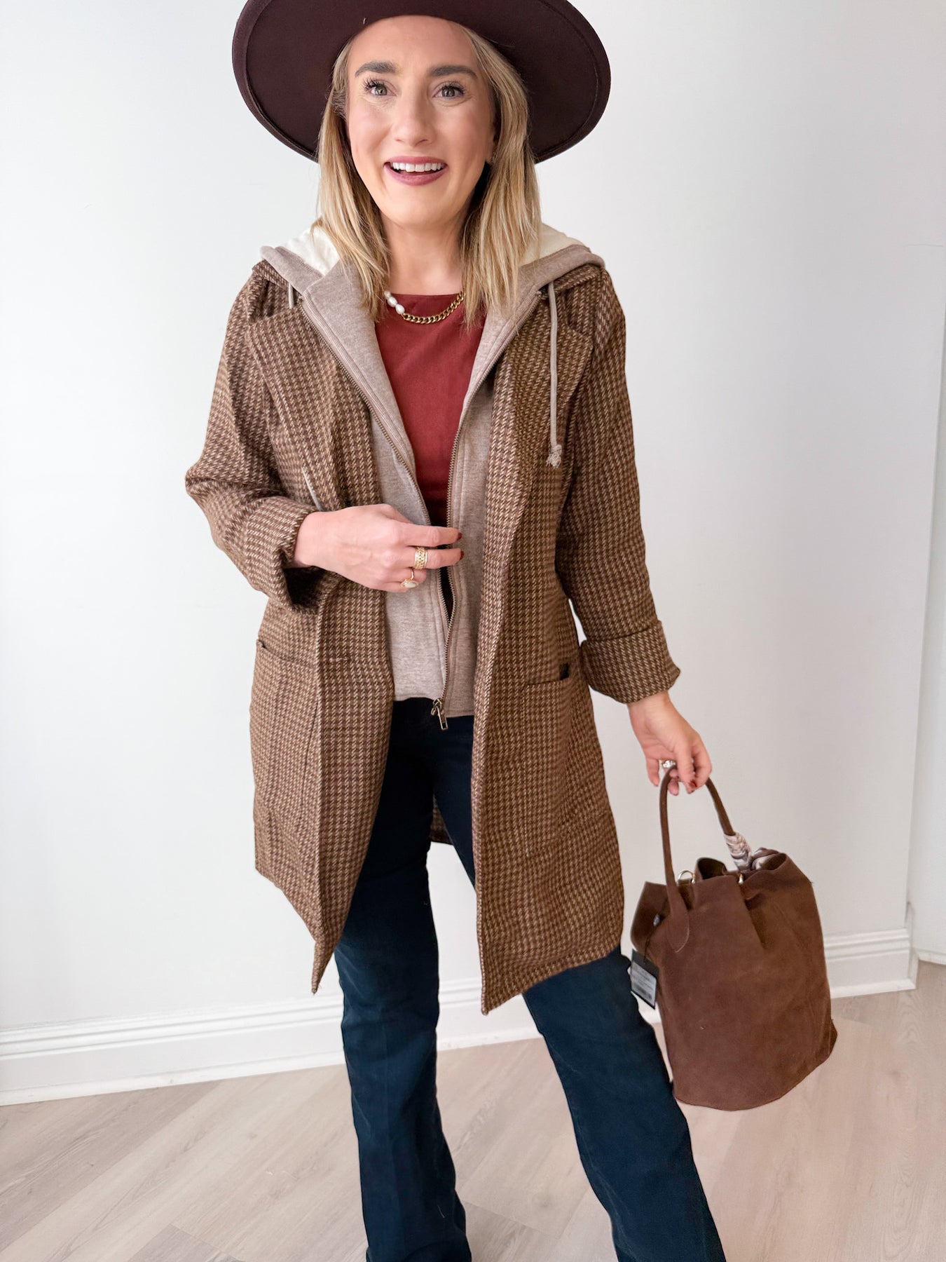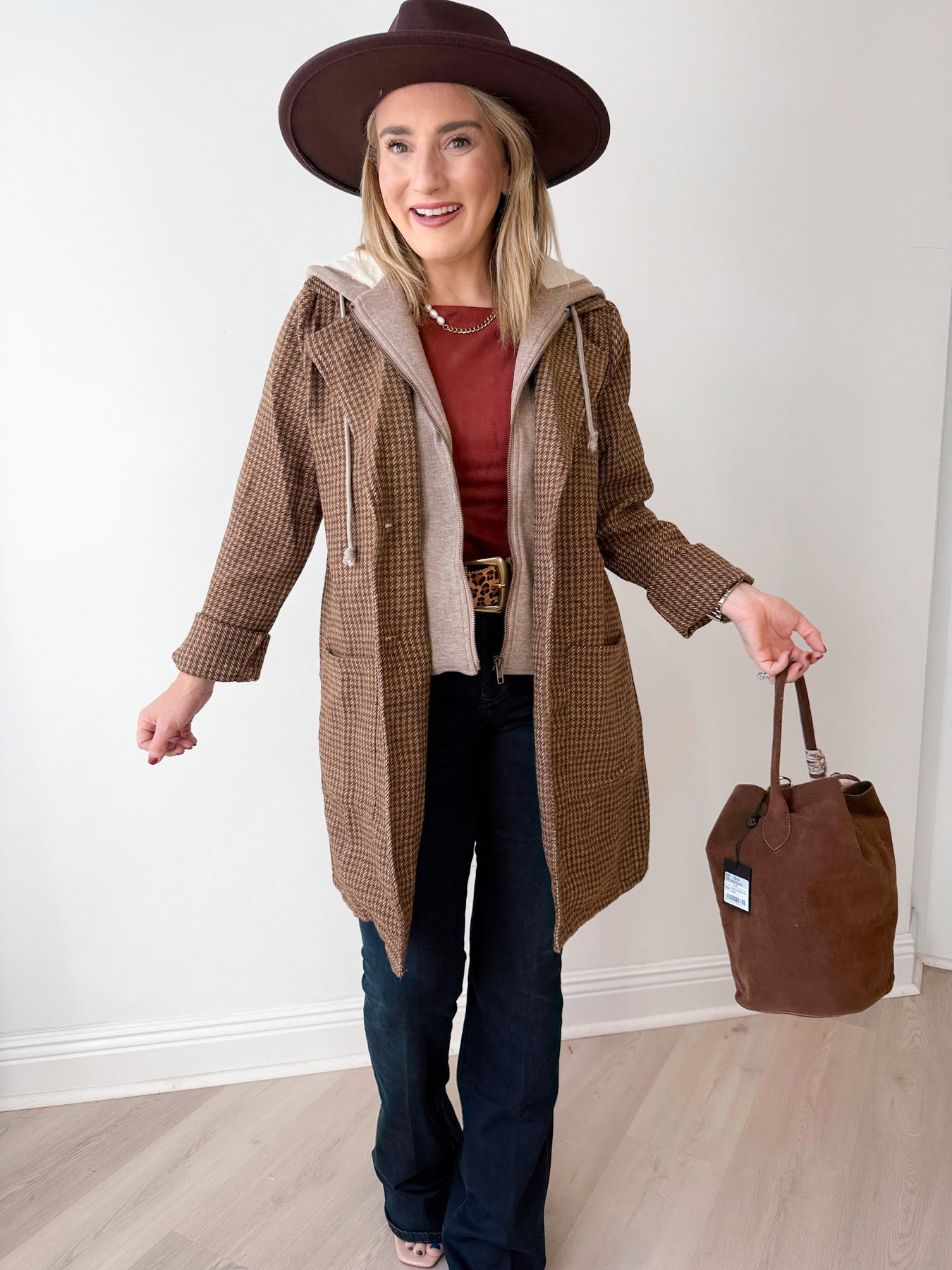 Two looks in one. This tailored coat layers a detachable hoodie insert for a casual, laid-back vibe—or wear it without for a sleek, polished finish. Versatile and chic, it’s the perfect outerwear piece to carry you from weekday errands to weekend outings.