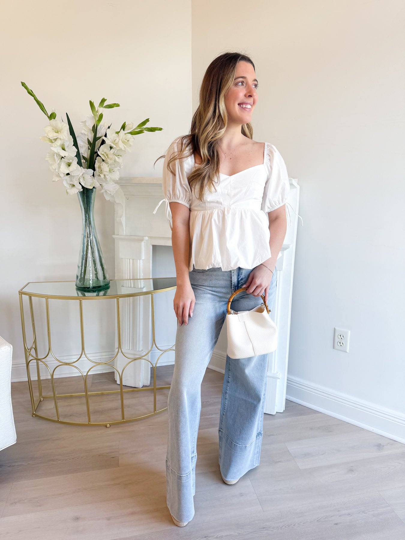 Crisp, clean, and made for spring days. The Bailey Poplin Blouse features a soft poplin fabric with a flattering sweetheart neckline and delicate puff sleeves for a timeless, feminine look. Lightweight and easy to wear, this blouse pairs perfectly with denim for an everyday outfit or dressed up with skirts or tailored bottoms for a polished spring moment. A true closet staple you’ll reach for again and again.