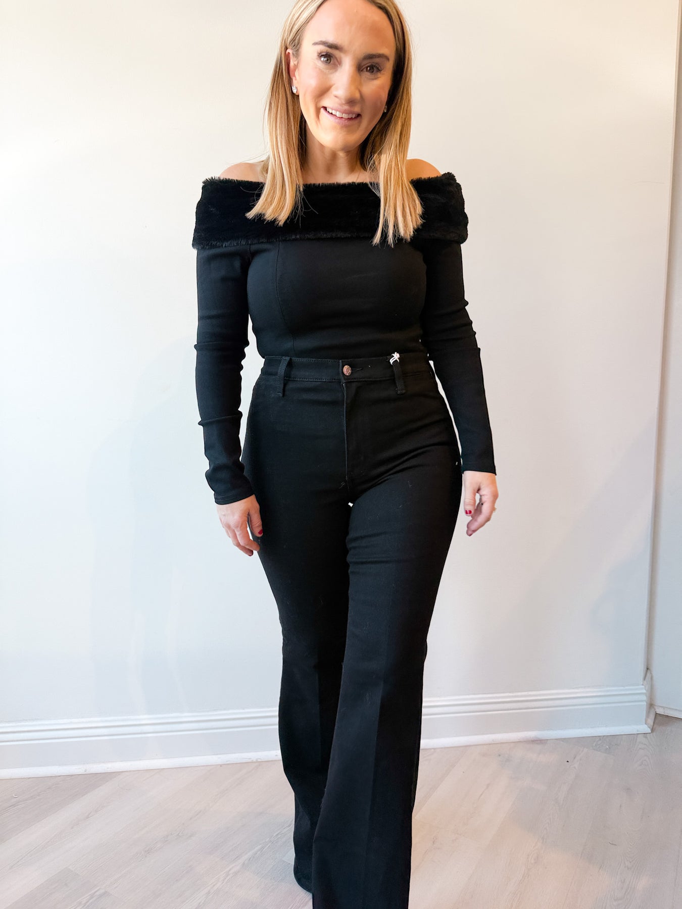 Turn heads in the Stella Faux Fur Off the Shoulder Top — the perfect blend of sleek and statement. Designed with a flattering off-the-shoulder neckline and finished with a luxe faux fur trim, this top brings elevated glamour to any outfit. The fitted silhouette hugs just right, while the soft stretch fabric keeps it comfortable and easy to wear.