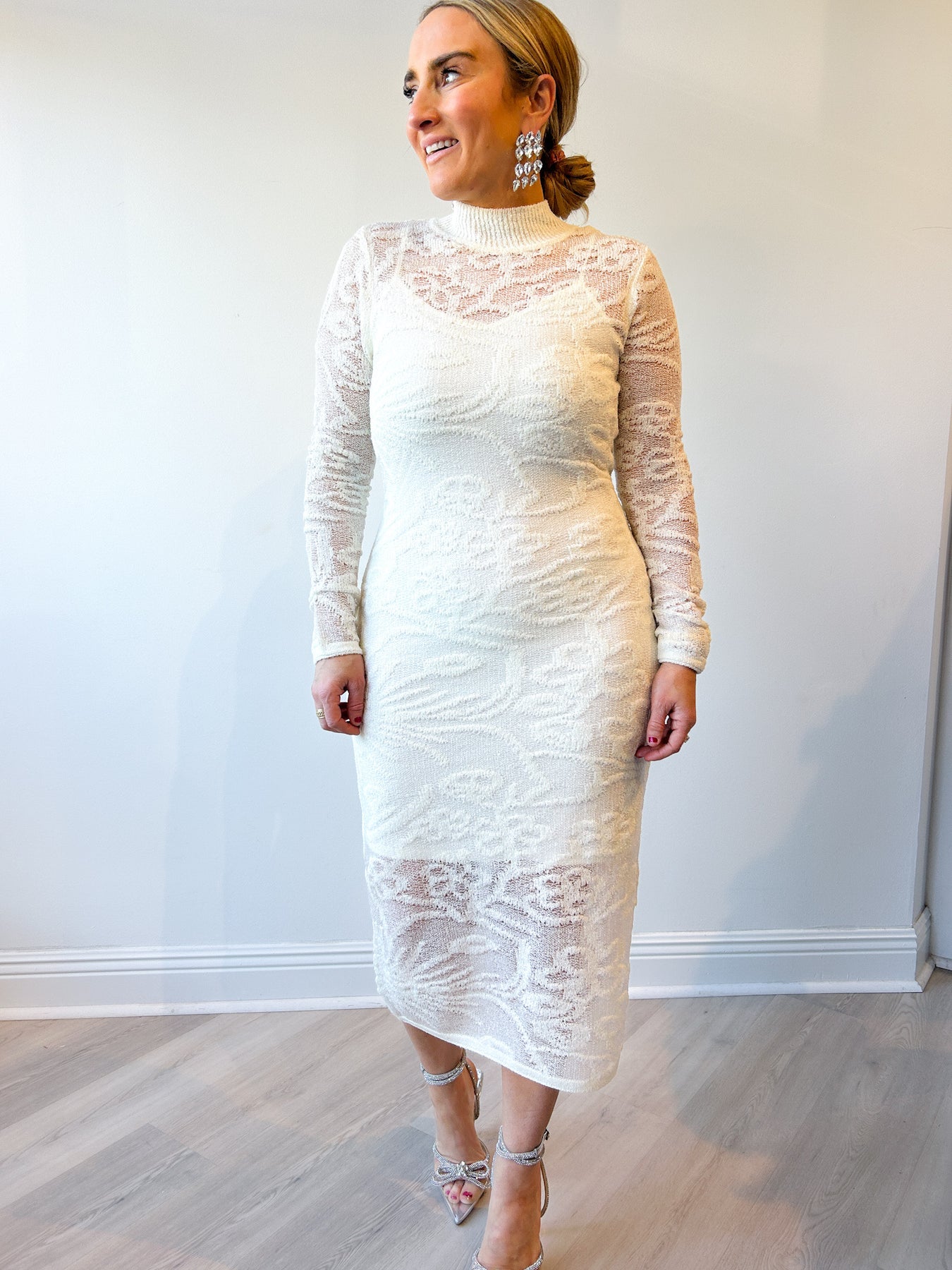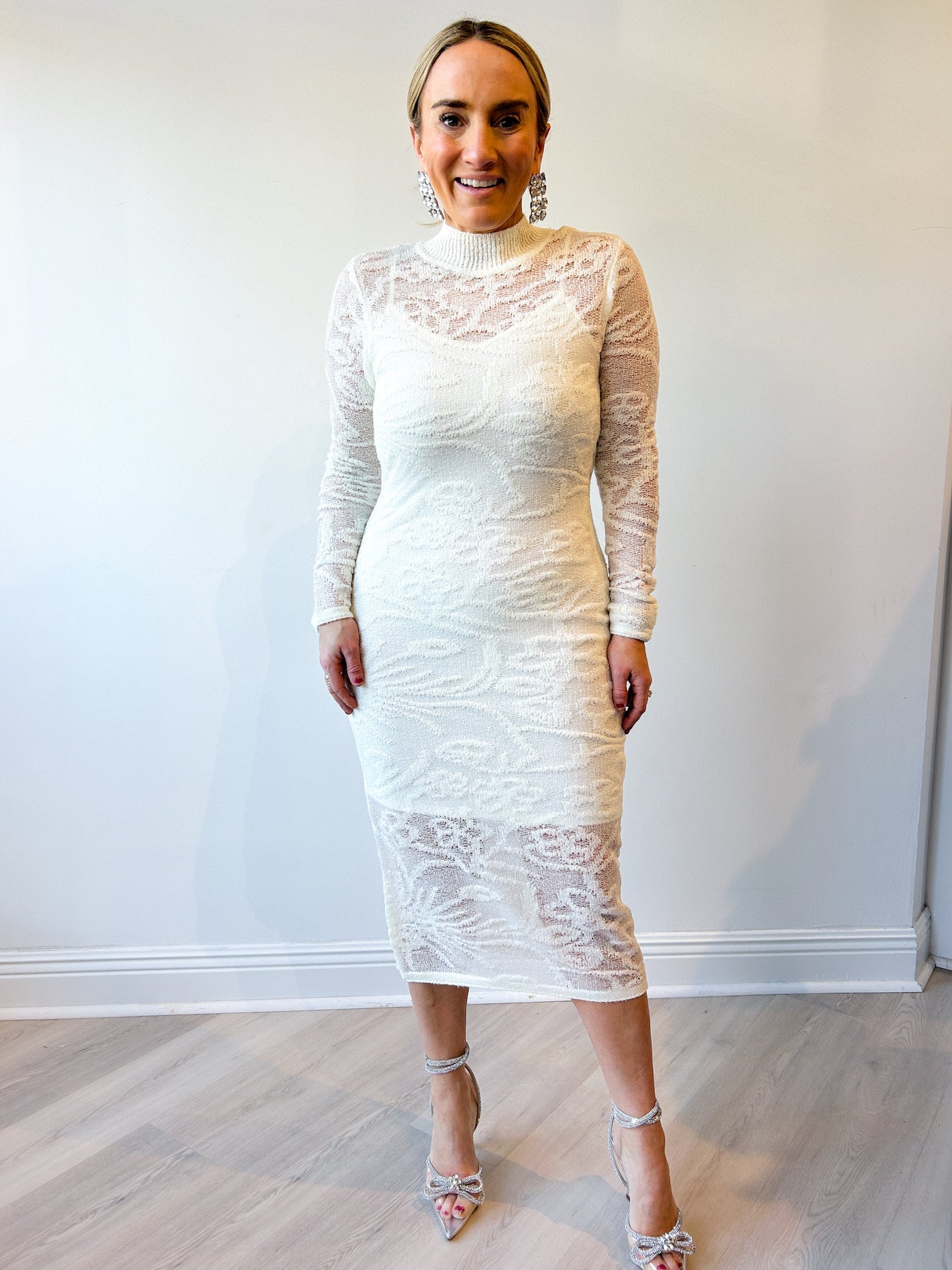 Elegant, timeless, and effortlessly flattering, the Illie Dress is a stunning lace midi designed to make a statement. Featuring an allover delicate lace fabrication with a fitted silhouette, this dress highlights your shape while maintaining a classic, feminine feel. The high neckline and long sleeves add sophistication, while the sheer lace detailing brings just the right amount of allure.