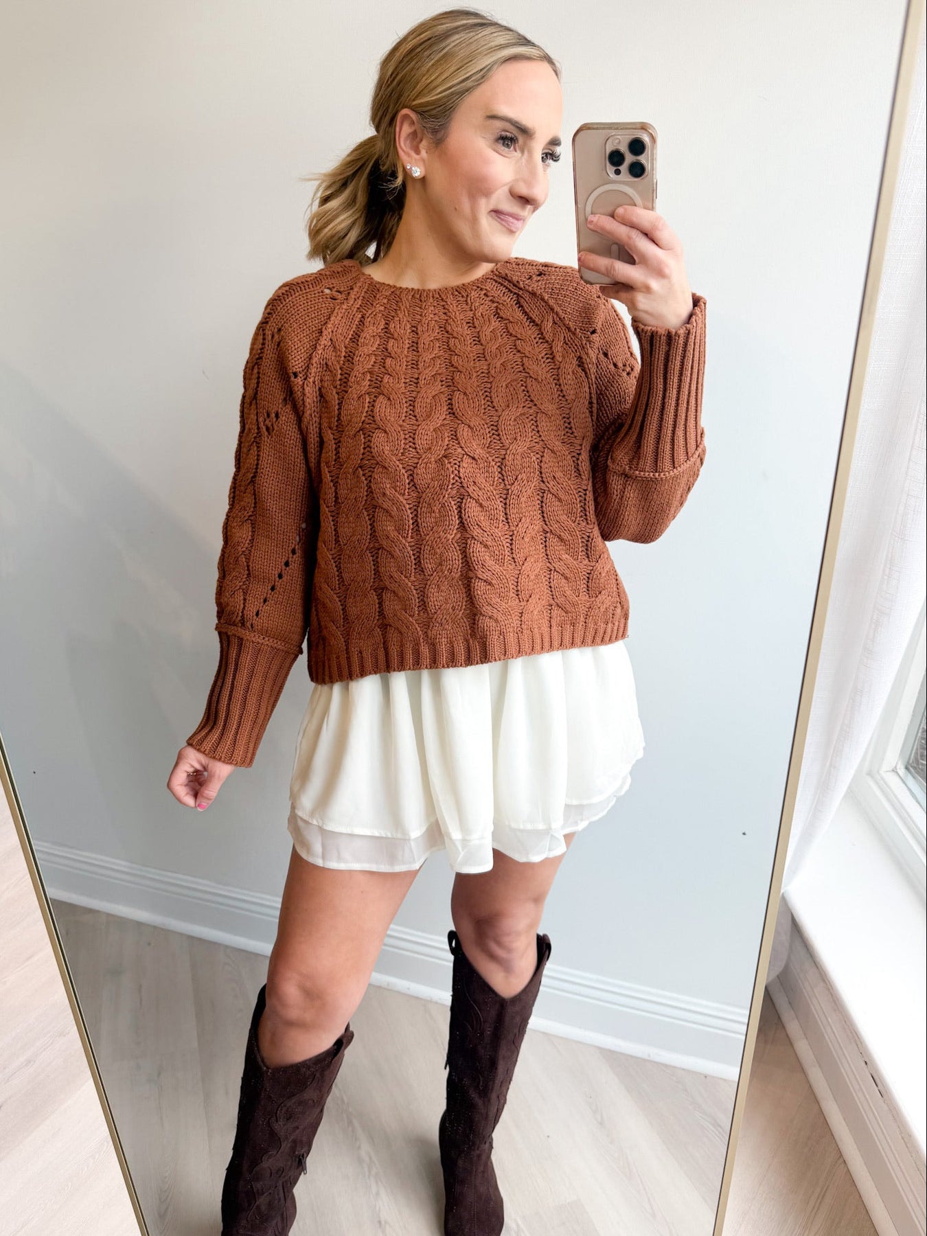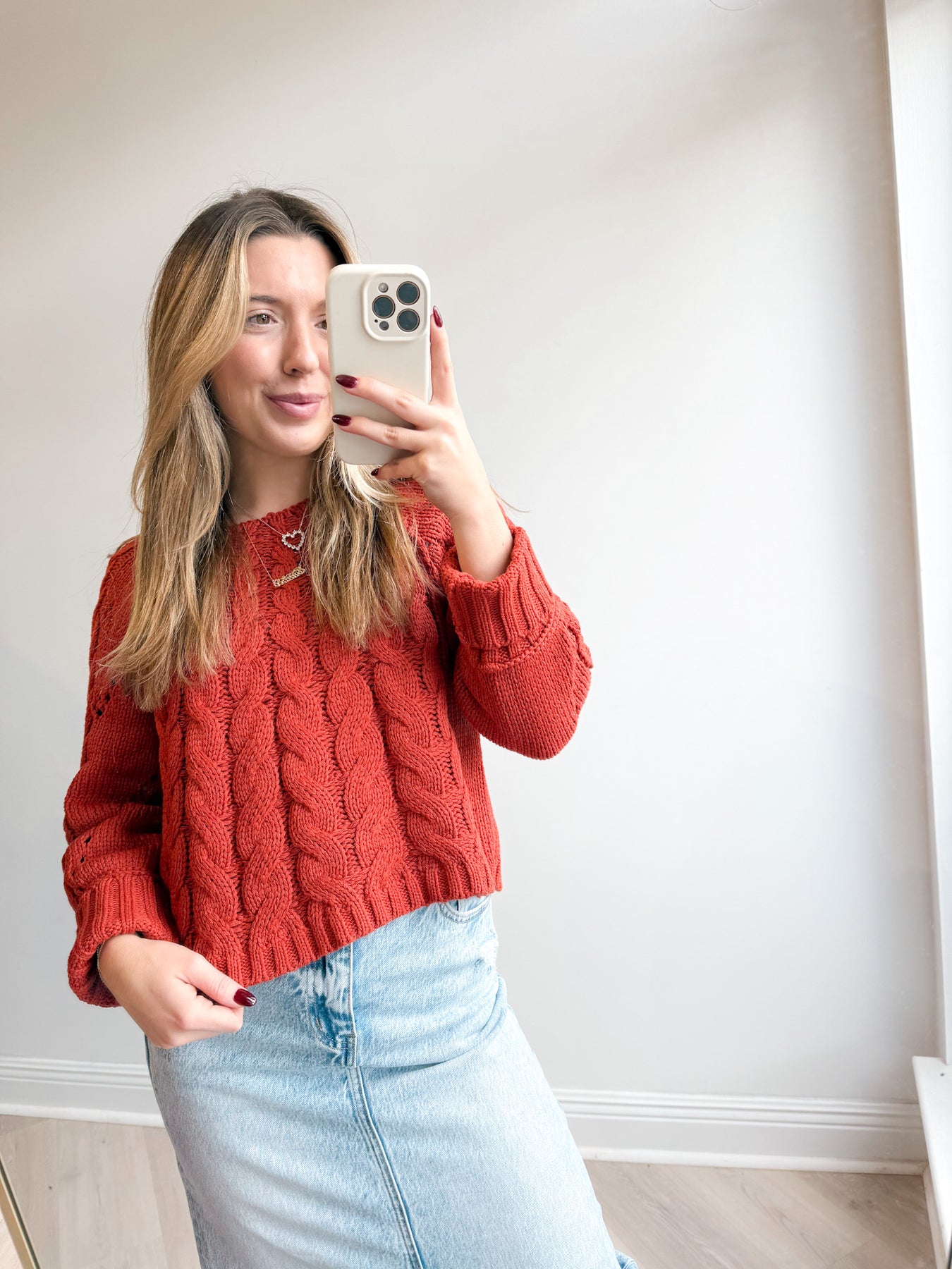 The Alex Cable Knit Sweater is the cozy, everyday staple you’ll want in every color. Designed with a classic cable-knit texture and a relaxed, easy fit, this sweater pairs warmth with effortless style. The ribbed cuffs and hem add a polished finish, while the soft knit fabric keeps it comfortable for all-day wear. Perfect with skirts, denim, leggings, or layered over dresses, the Alex Sweater is a versatile fall-to-winter must-have.