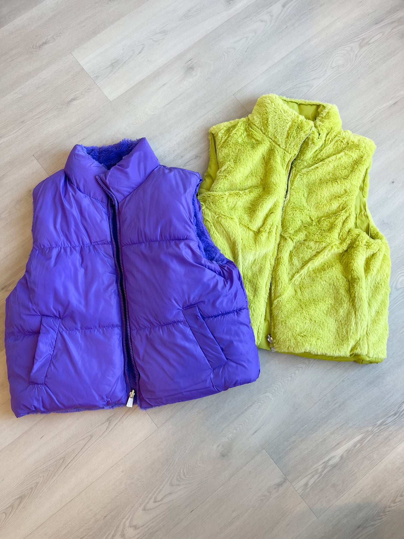 Perfect vest for Mardi Gras! Whether you're feeling like you want some fur or your basic puffer vest, this vest is 2 in 1! A great Mardi Gras staple to keep in your closet year after year!