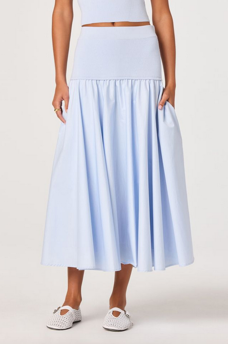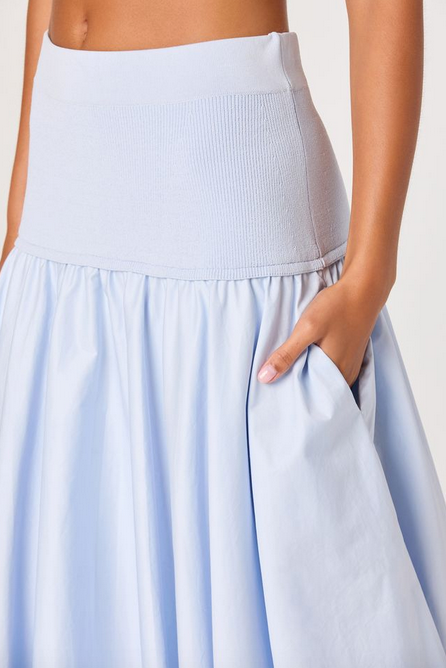 The Thesan Skirt is an effortless blend of comfort and feminine elegance. Designed with a soft, stretchy knit waistband, this midi skirt flows into a lightweight, airy fabric that moves beautifully with every step. The drop-waist silhouette adds a modern touch, while the full, gathered skirt creates a flattering, easy shape.