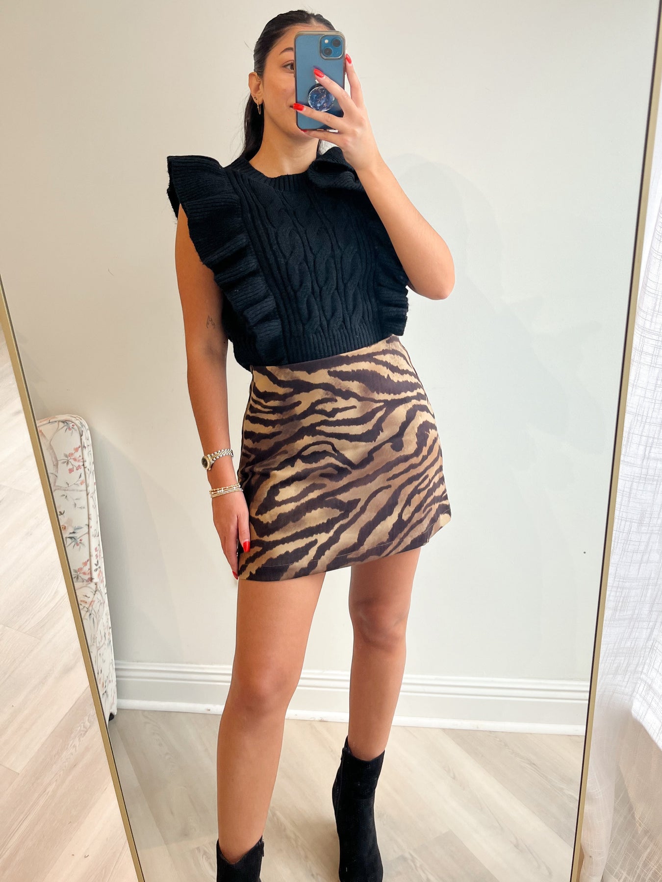 The Vivian Mini Skirt delivers effortless edge with its luxe suede texture and bold animal print. Featuring a flattering high-waist fit and clean silhouette, it’s the perfect match to the Vivian Crop Top or a sleek neutral for a chic statement look.