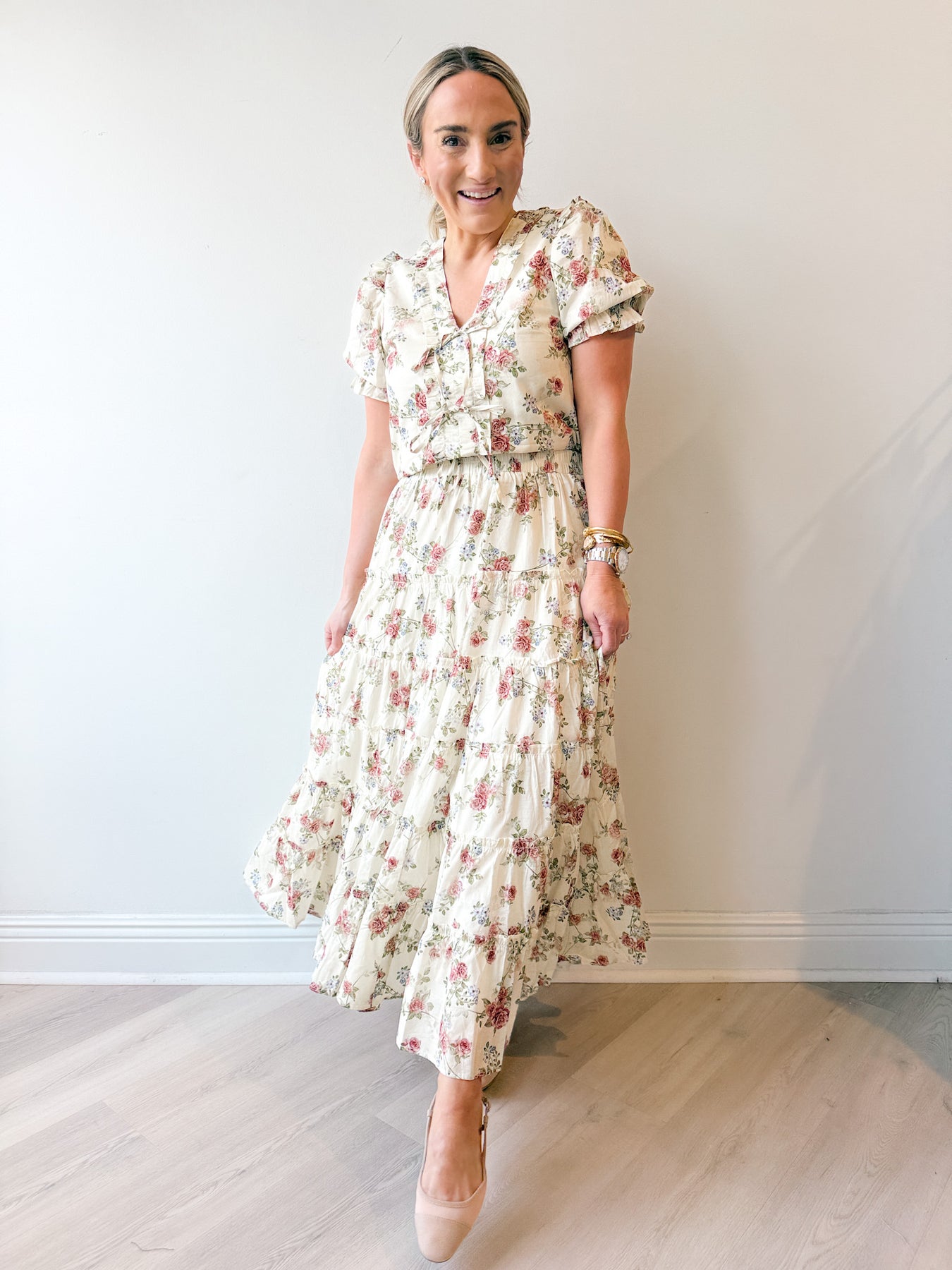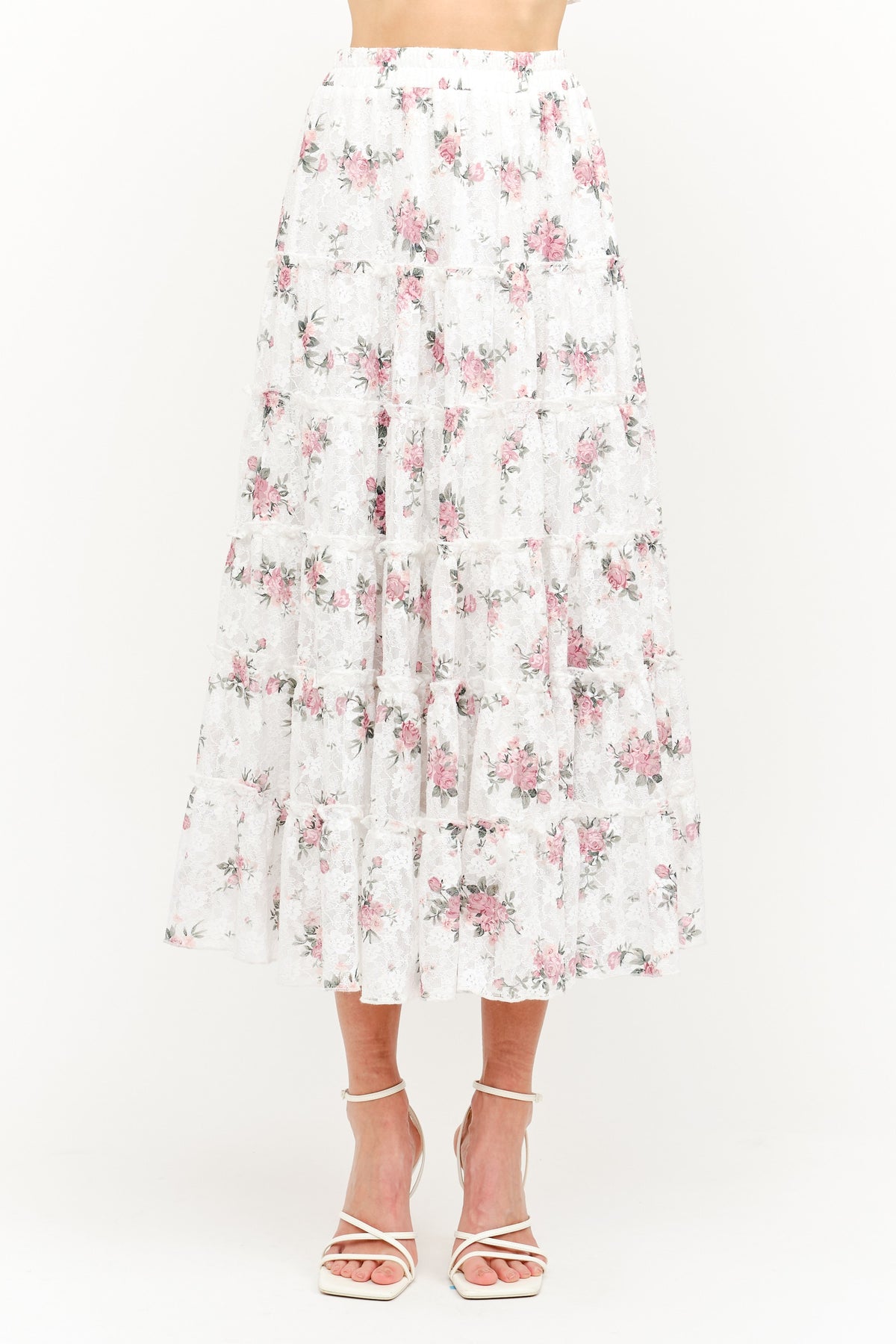 Soft, romantic, and effortlessly elegant, the Maura Floral Midi Skirt is a timeless statement piece. Designed with a delicate floral print and tiered silhouette, this skirt moves beautifully with every step. The elastic waistband offers a comfortable, flattering fit, while the airy fabric gives it a light, feminine feel perfect for any season.