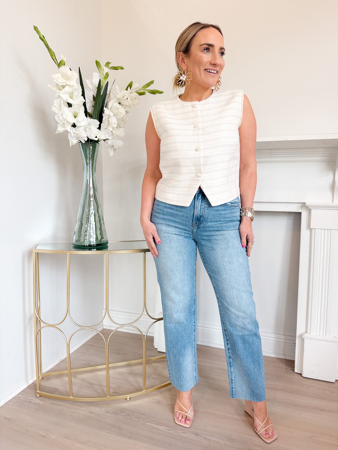 Gorgeous tweed vest from Lucy Paris! The cream color makes it perfect to pair with a bunch of different bottoms for spring!