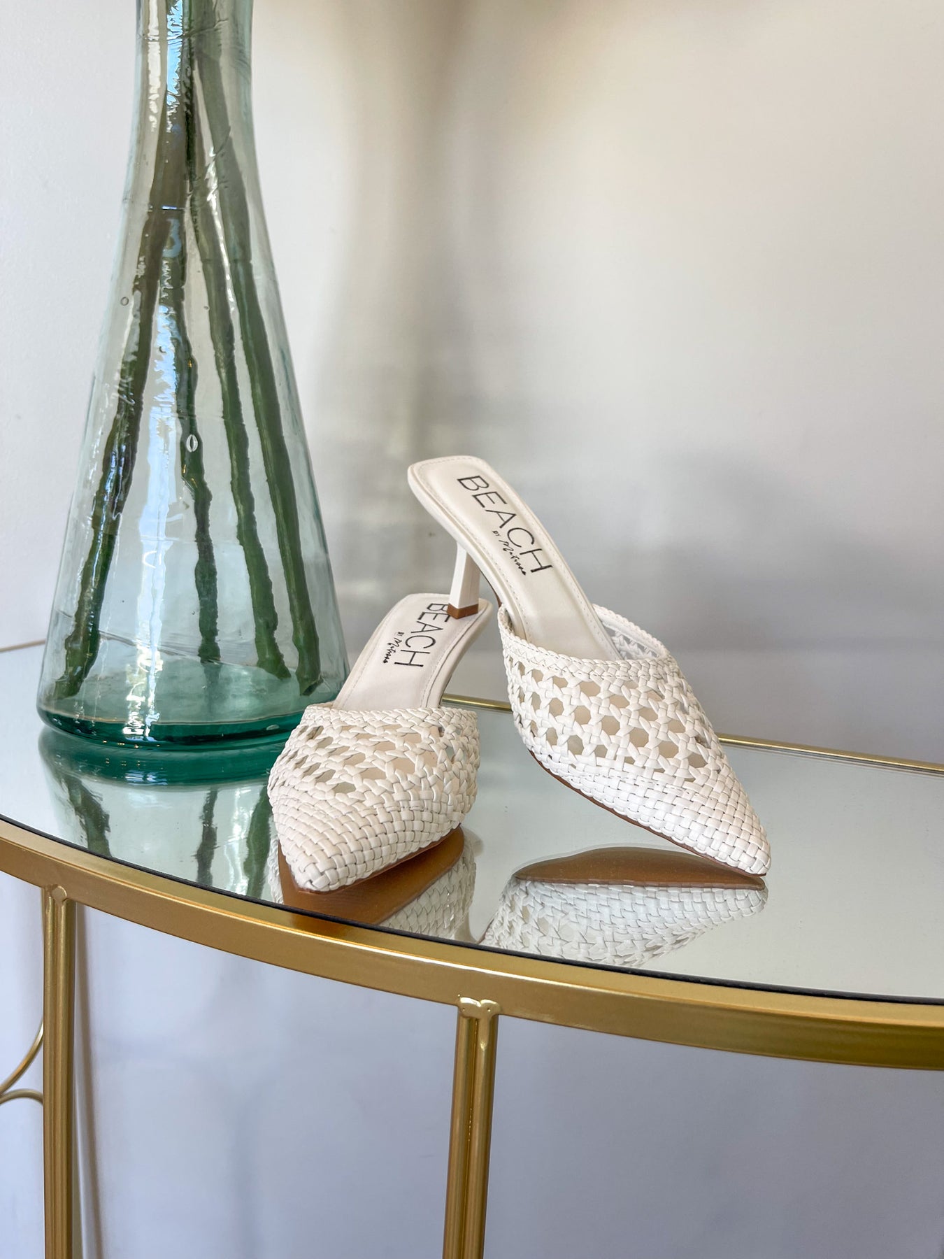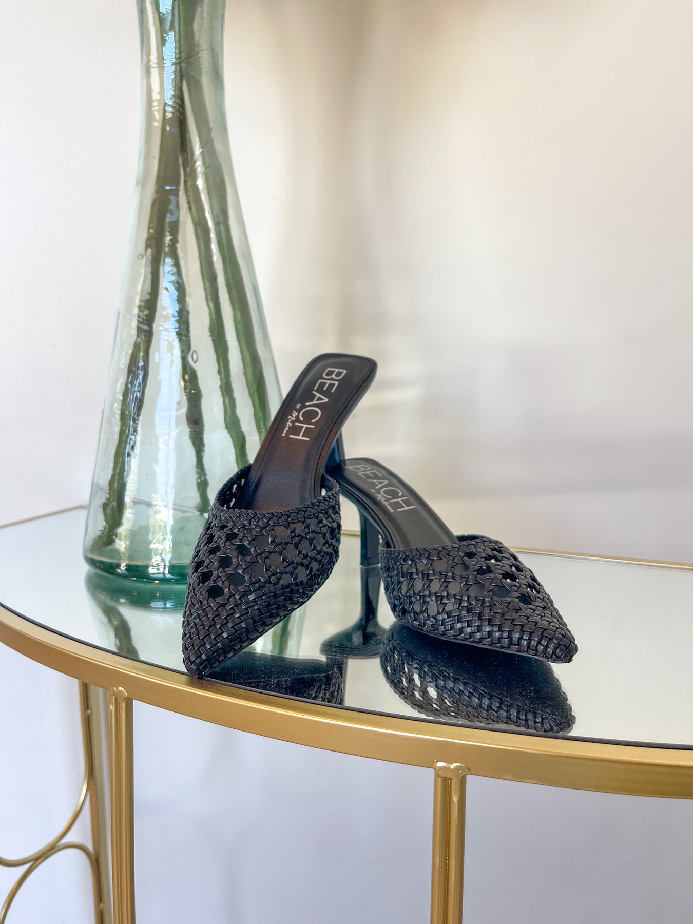 A chic woven mule heel featuring a pointed toe and intricate basket-weave texture for a stylish, airy feel. Designed with an open back for easy slip-on wear and set on a sleek mid heel that adds just the right amount of height. The neutral tones make it an effortless option for dressing up denim, skirts, or summer dresses. Available in classic black and ivory.