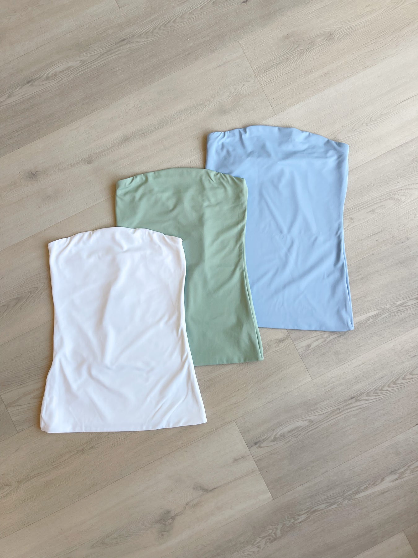 A sleek and versatile strapless tube top designed with a smooth, stretchy fabric that hugs the body for a flattering, stay-put fit. The clean, minimal silhouette makes it perfect for layering under jackets or styling on its own, while the soft ruching through the torso adds subtle shaping and comfort. Easy, elevated, and endlessly wearable, this essential comes in a variety of soft neutral and pastel hues — making it a go-to staple for warm-weather looks or effortless everyday styling.