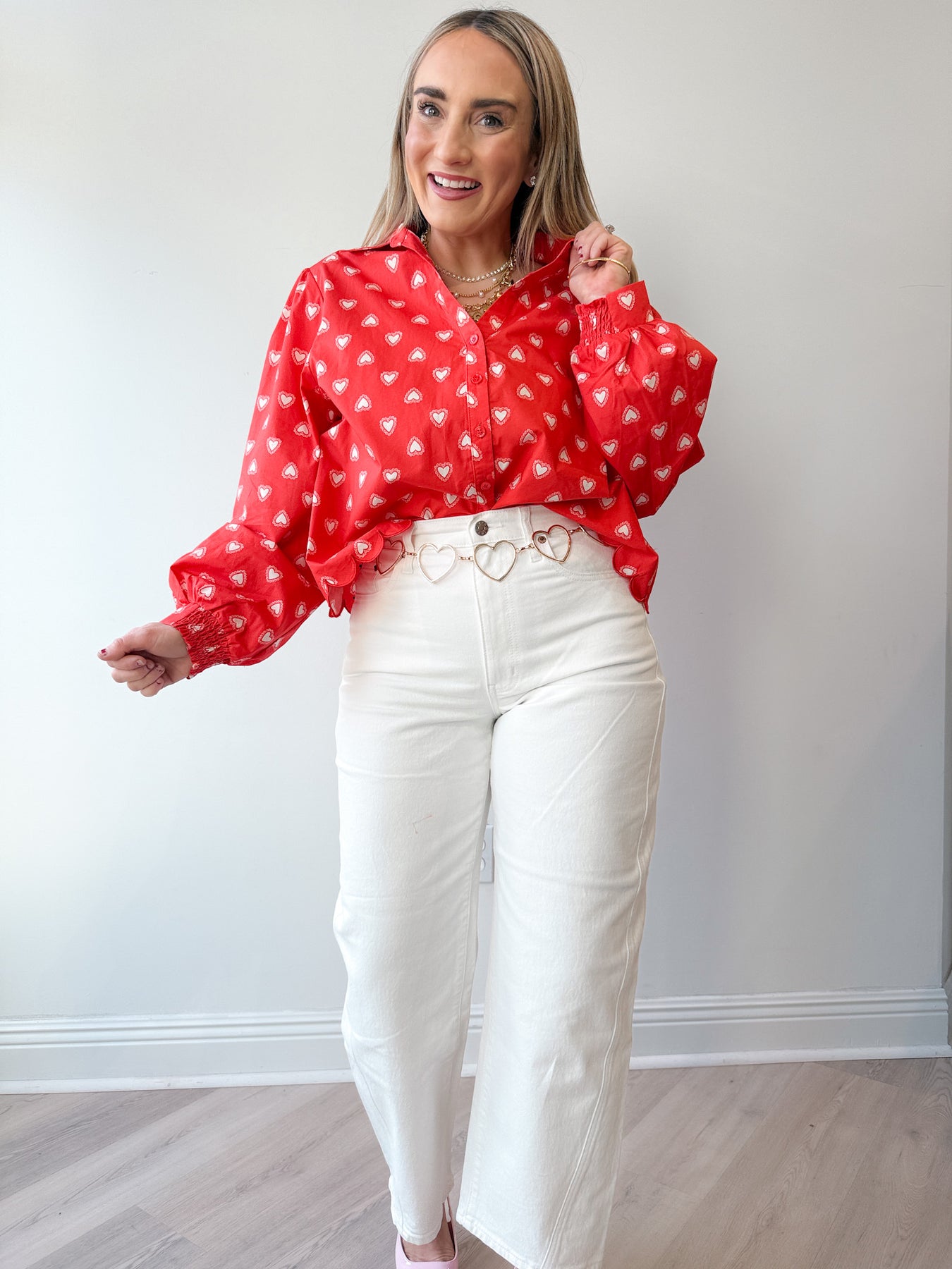 Add a playful yet polished touch to your wardrobe with our Heart Print Poplin Shirt, designed to blend timeless tailoring with a romantic twist. Crafted from lightweight, breathable cotton poplin, this red button-down shirt features an allover heart motif that brings charm and personality to any outfit.