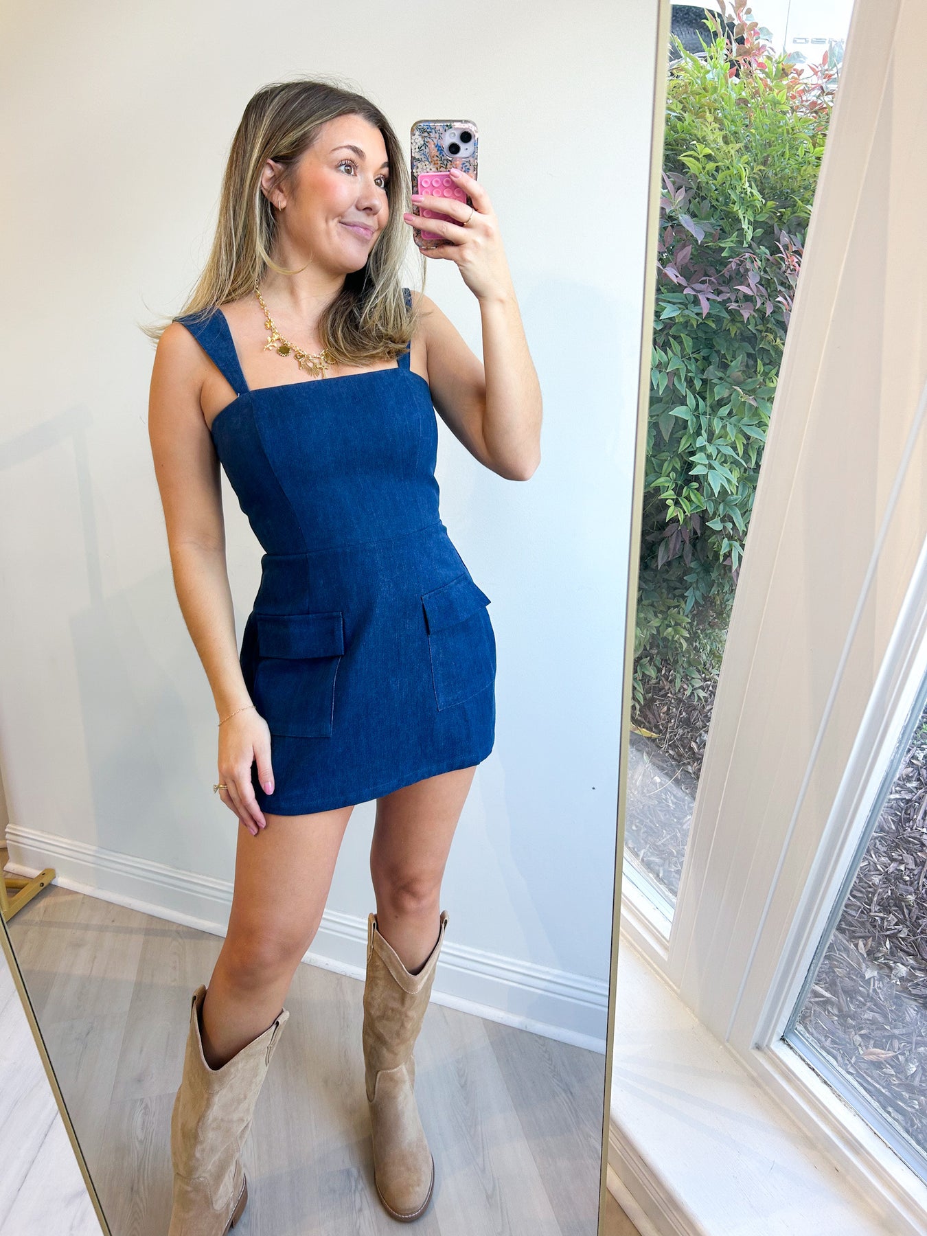 The Diana Square Neck Romper is a fresh, fashion-forward take on classic denim. Featuring a structured square neckline, wide straps, and front utility pockets, this romper combines clean lines with effortless charm. Dress it up with heels and jewelry or keep it casual with sneakers — it’s the perfect one-and-done outfit for any season.