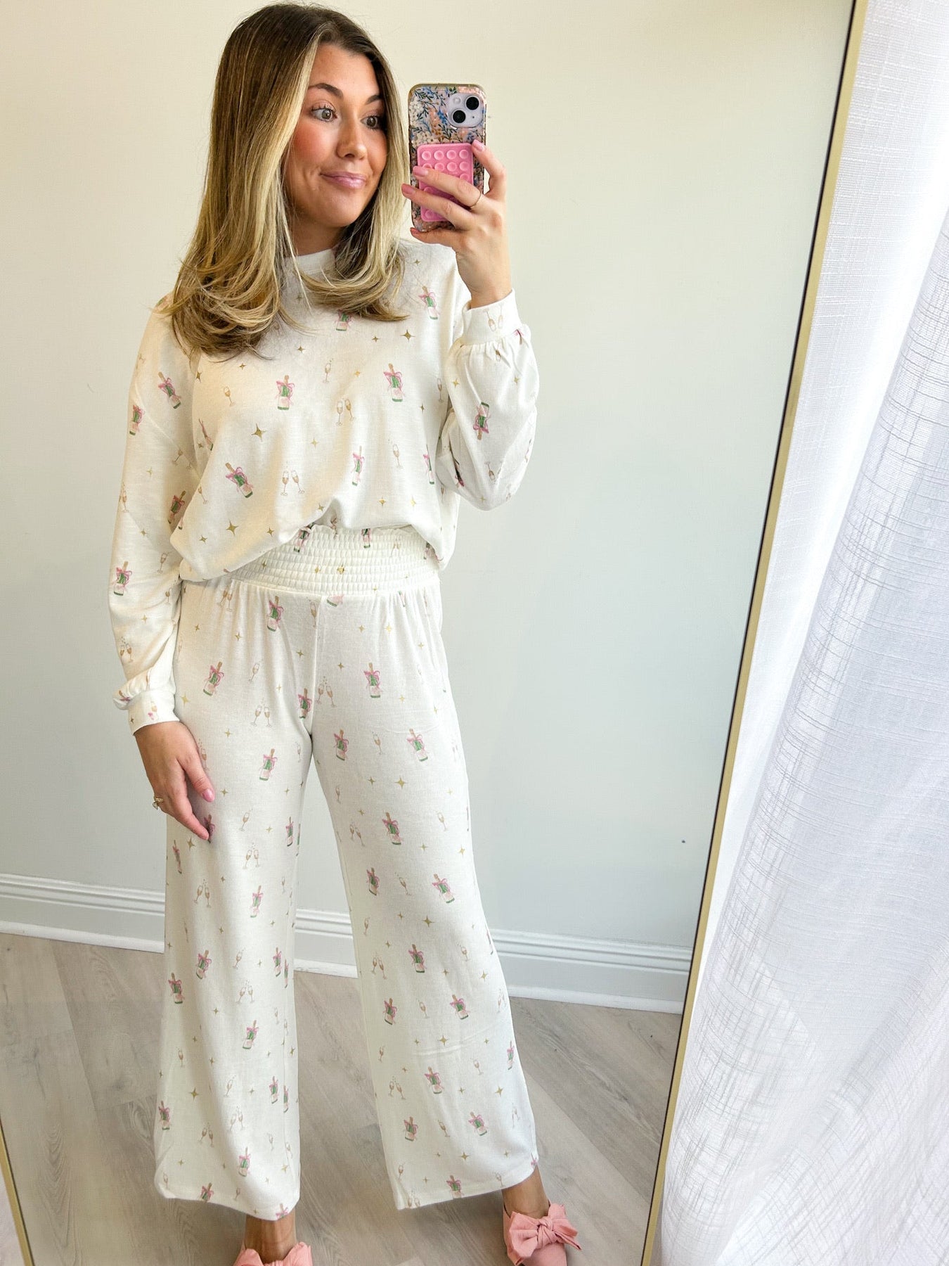 Cozy, relaxed, and impossibly cute — this long-sleeve top features an allover champagne-glass print that adds a playful touch to your lounge look. Soft, comfy, and perfect for pairing with the matching pants for the sweetest set.