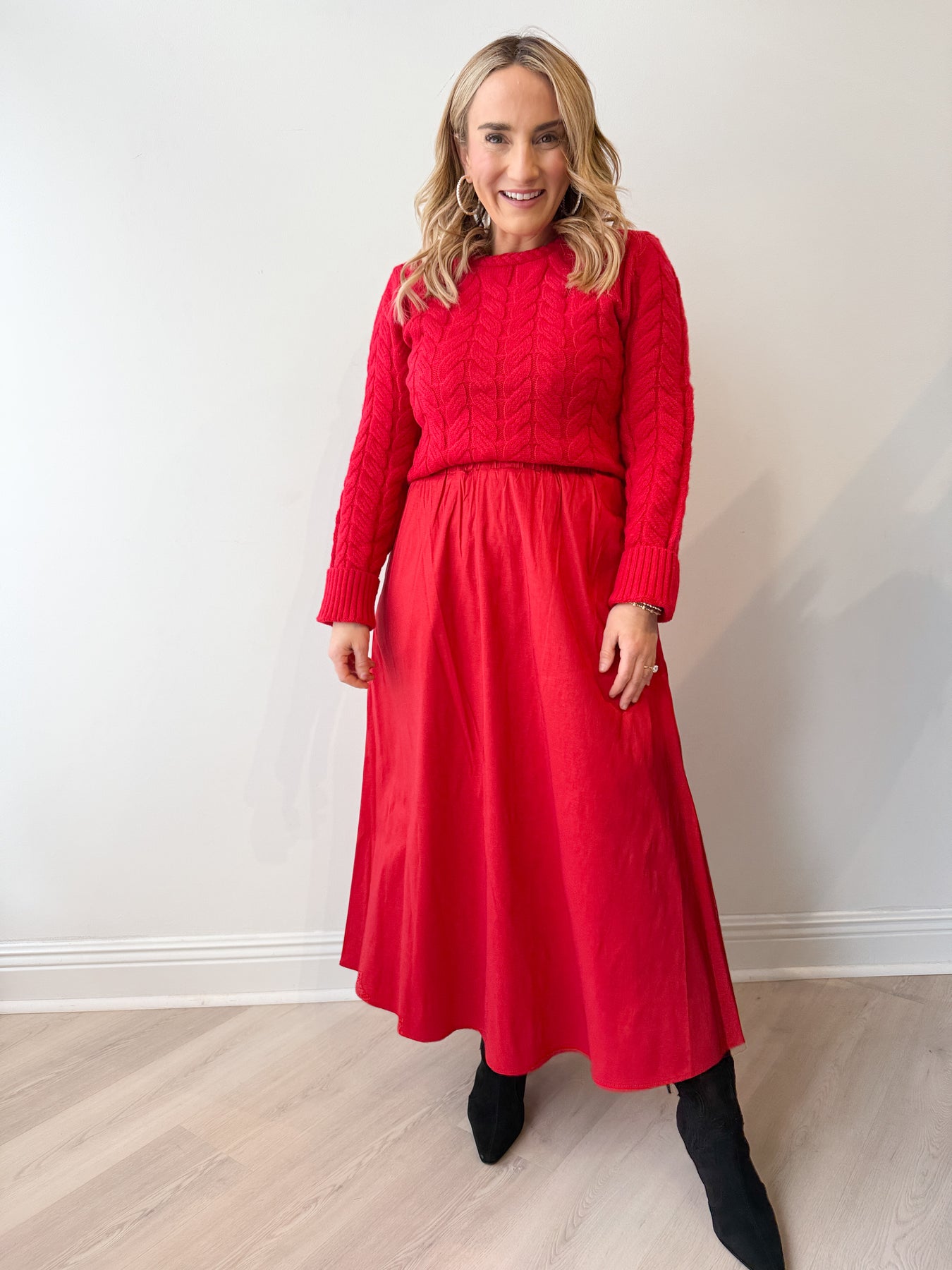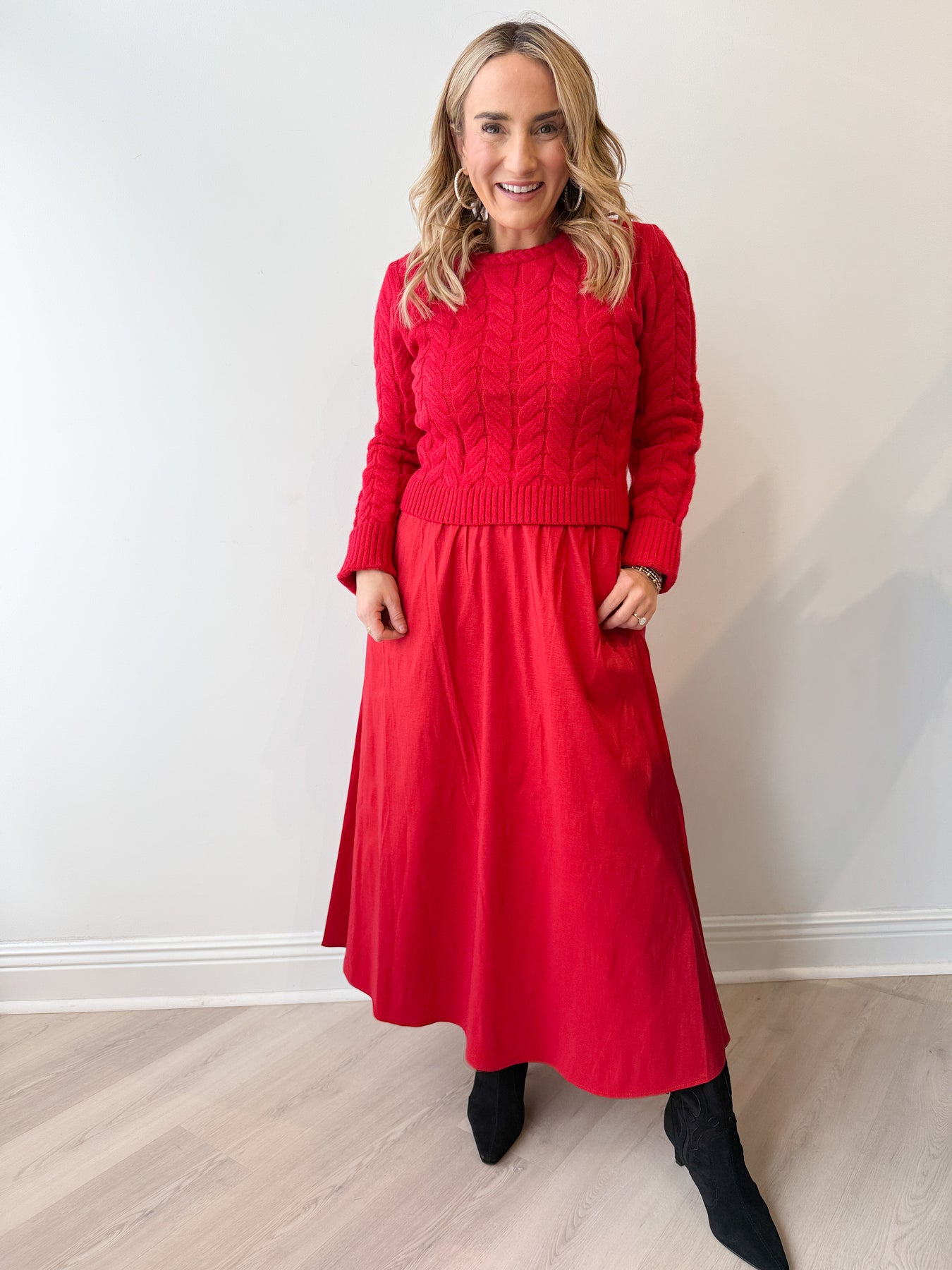 The bold, vibrant color adds a fun pop to your winter wardrobe—perfect for holiday festivities, workdays, or casual weekends. Warm, comfortable, and endlessly versatile, the Cassidy Sweater is one you’ll reach for again and again.