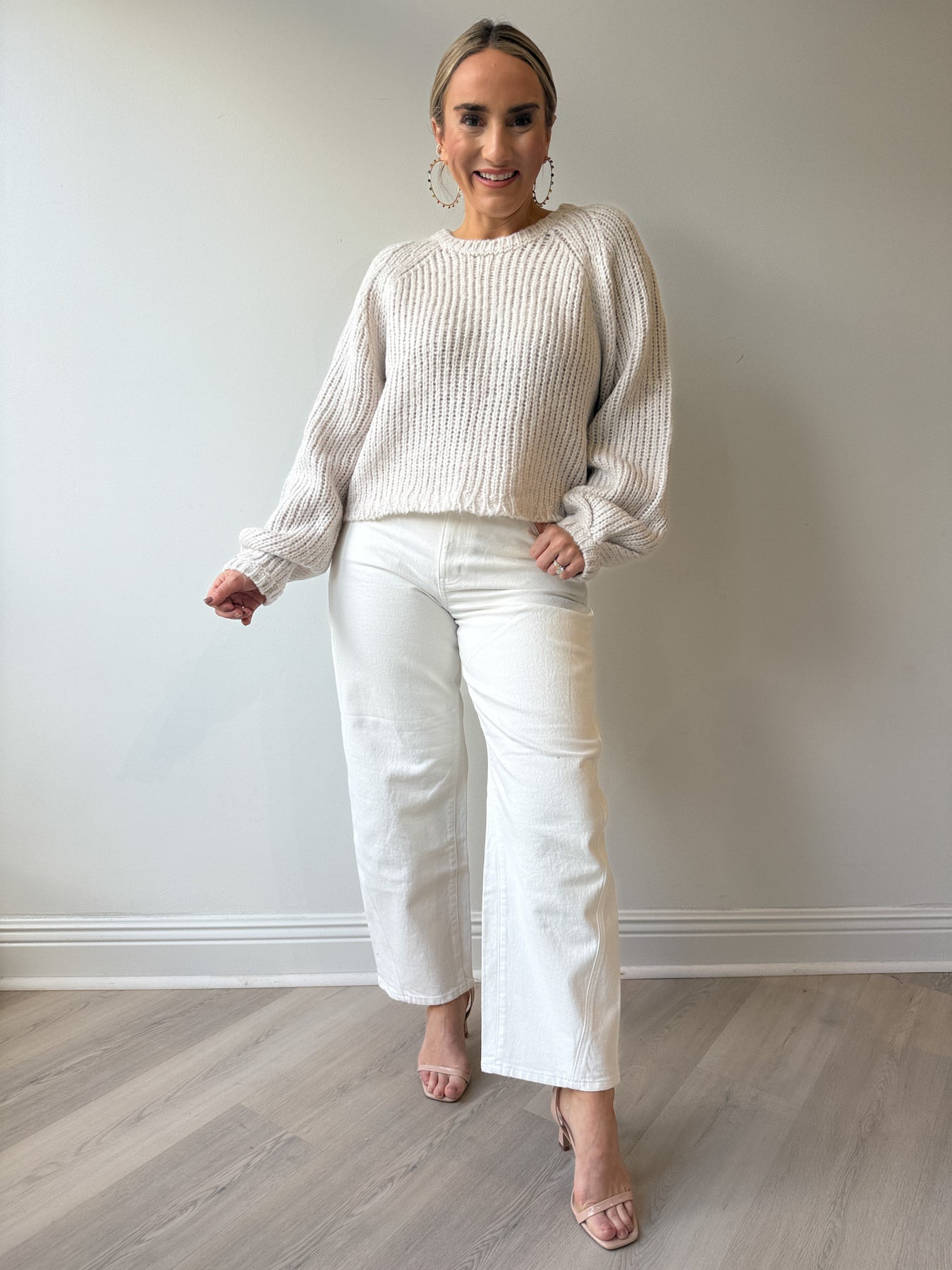 The Sheena Sweater is your go-to cozy classic with a touch of effortless style. Featuring a chunky ribbed knit, relaxed fit, and balloon sleeves, it offers both warmth and a flattering silhouette. The soft neutral hue makes it easy to pair with denim, skirts, or trousers for a laid-back yet polished look. Perfect for chilly days when you want comfort without sacrificing style.